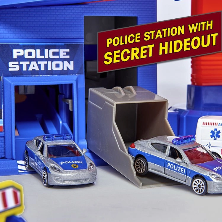 Sunt incluse zone tematice precum stația de poliție cu ascunzătoare secretă, punctul de pompieri, stația de alimentare și spălătoria. Datorită spațiului generos de parcare pentru până la 35 de mașini și organizării inteligente, setul este ideal pentru frați și prieteni. Un cadou grozav care dezvoltă motricitatea fină, imaginația și jocul cooperativ.