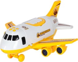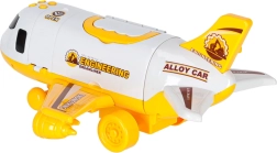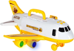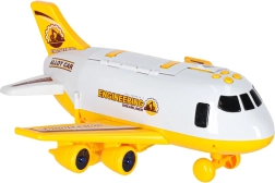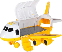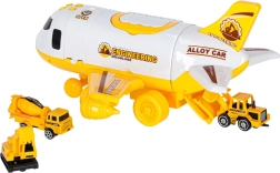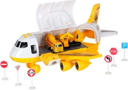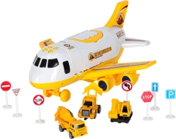 Sunt incluse trei vehicule de construcții galbene – excavator cu braț mobil, betonieră și buldozer – plus 7 indicatoare rutiere. Toate încap în interiorul avionului. Jucăria are aripi detașabile pentru economisirea spațiului și mâner pentru transport facil.