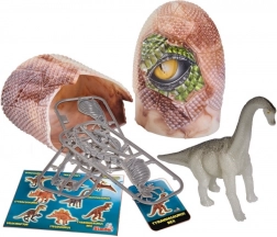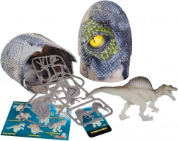 Această figurină de dinozaur în ou aduce bucuria descoperirii atât copiilor, cât și adulților. Fiecare ou ascunde o figurină detaliată de 10 cm, un mini-puzzle al scheletului dinozaurului și un card colecționabil stilat. Dinozaurul strălucește în întuneric, astfel încât încântă chiar și după stingerea luminilor.