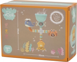 Pista acvatică colorată cu motive de animăluțe marine transformă fiecare baie într-o aventură de descoperire. Turnați apă în pâlnia superioară, iar jetul activează tubulețele interconectate, învârte rotițele și pune în mișcare figurinele – o distracție care captează atenția copiilor și face mai plăcută baia de zi cu zi.
