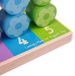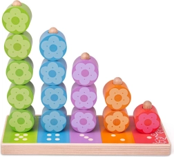 Fiecare stâlp are propriul număr și propria culoare, astfel încât copiii înțeleg ușor principiul asociării și al cantității. Piesele în formă de floricele sunt ușor de prins chiar și de mâinile mici și îi motivează atât la joacă independentă, cât și la descoperire împreună cu părinții.