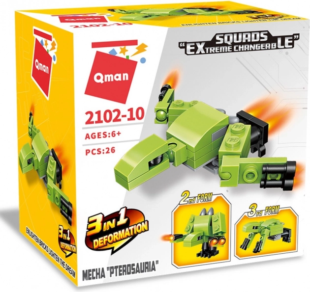 Setul de construit Qman Mecha Pterosauria 3în1 este ideal pentru mici entuziaști în ale construcției și modelării. Copiii pot alege din trei modele asamblabile, sau pot crea propriile construcții unice. Această jucărie este realizată din plastic ABS de calitate și rezistent, asigurând o durată lungă de viață.