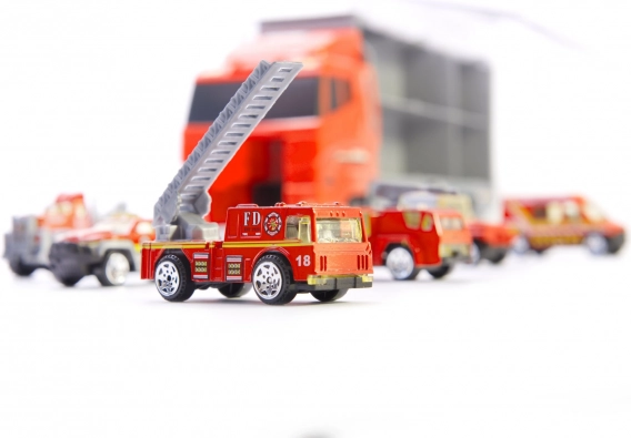 Cu camionul și cele șase mașinuțe metalice solide, copiii pot trăi momente de distracție în rolul de pompieri. Setul include diferite tipuri de mașini, proiectate să semene cu vehiculele reale. Fiecare mașină are părți mobile care asigură ore de distracție.