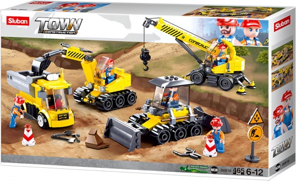 Sluban Șantier conține toate elementele necesare pentru a crea un șantier complet cu 465 de piese.