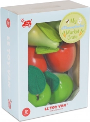 Bucurați-vă de o zi „la piață” cu această frumoasă ladă din lemn LE TOY VAN plină cu fructe. Setul include două mere roșii, două mere verzi și două pere verzi, cu frunze din fetru. Jucăria este realizată din lemn sustenabil, vopsită cu vopsele netoxice pe bază de apă și se potrivește perfect în mâinile mici. Susține jocul imaginativ, motricitatea fină și învățarea despre o alimentație sănătoasă.