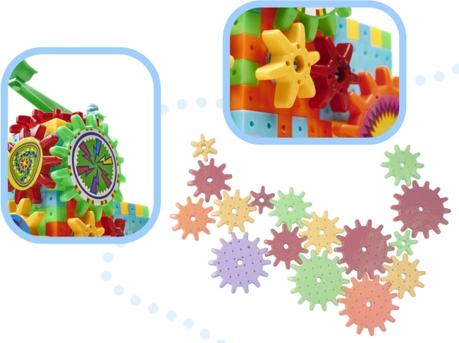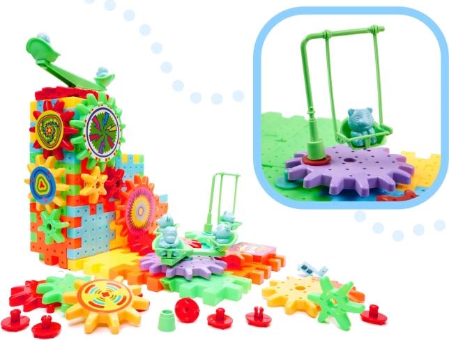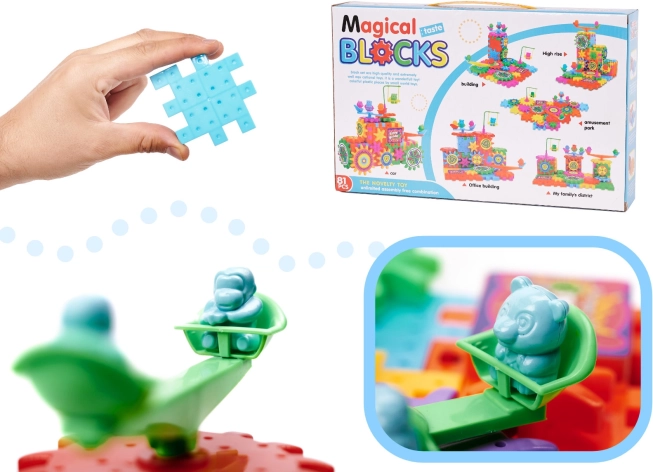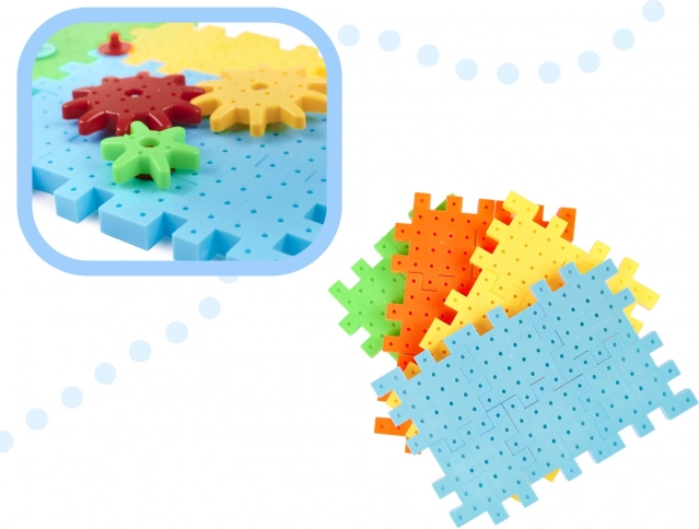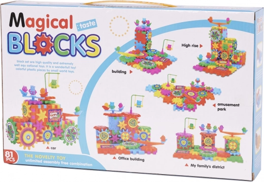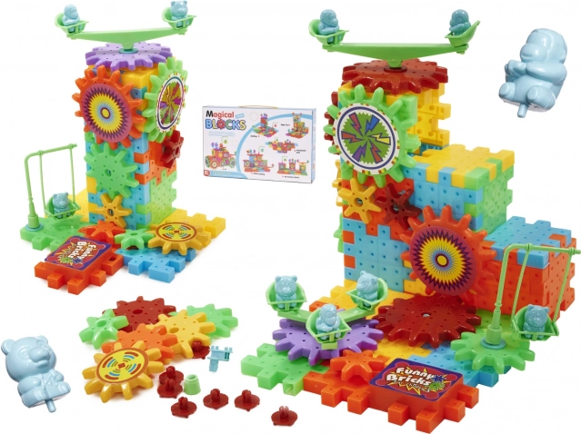 Cu blocurile Magical Block, distracția nu va avea sfârșit. Puteți fi siguri că, cu acest set, copilul dvs. nu se va plictisi. Blocurile în formă de roți dințate sunt o propunere de distracție excelentă care susține dezvoltarea corectă a copilului dvs. În timpul construirii, micuțul constructor va stimula creativitatea, va dobândi abilitatea gândirii logice și creative și va dezvolta abilități manuale. Diversitatea elementelor și a culorilor oferă posibilități nelimitate de construire.