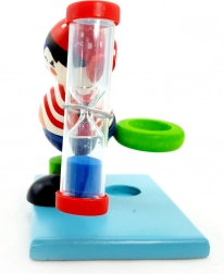 Motivați copiii să se spele regulat pe dinți într-un mod distractiv. Piratul din lemn cu clepsidră cu nisip albastru măsoară fiabil 2 minute, iar suportul integrat pentru periuța de dinți păstrează ordinea în baie.