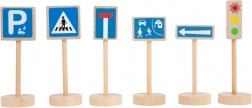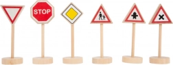 Setul de 25 de indicatoare rutiere din lemn și accesorii (de ex. conuri) îi ajută pe copii să înțeleagă regulile circulației rutiere în scenarii de joc realiste. Datorită simbolurilor lizibile și bazelor stabile, se manevrează ușor și sunt un adaos excelent la covoarele rutiere și căile ferate de jucărie.