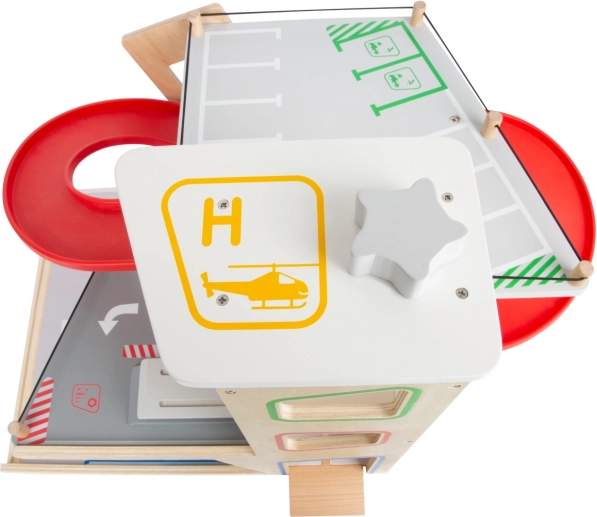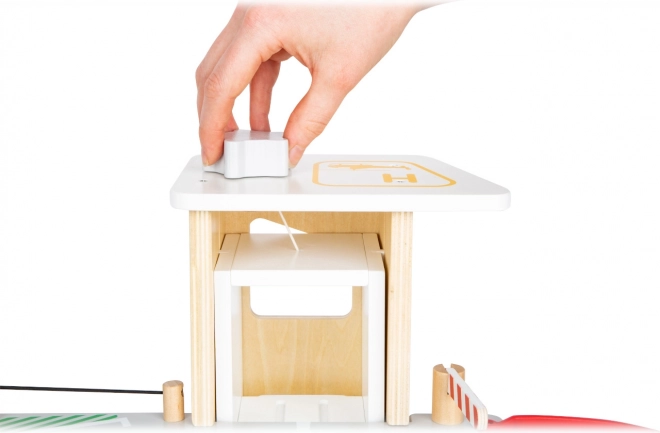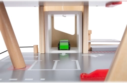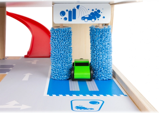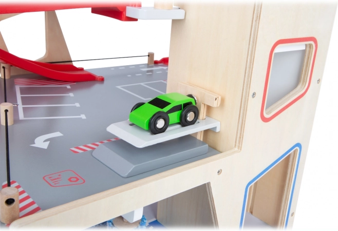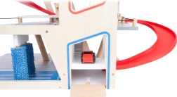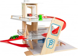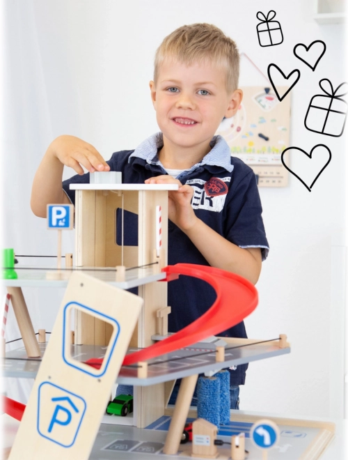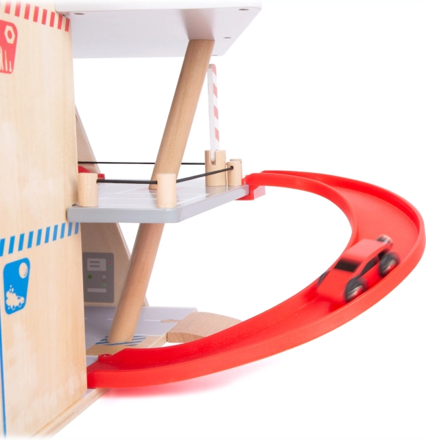 Acest parcaj premium din placaj de lemn de calitate oferă trei niveluri bogat echipate, conectate printr-un lift funcțional și două rampe line. Copiii pot parca, alimenta, încărca, spăla și repara – totul într-un singur loc, cu elemente realiste și o jucabilitate excelentă.