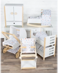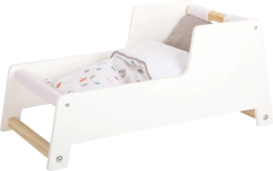 Pachetul include lenjerie de pat reversibilă în nuanțe neutre și o plapumă mare, sub care încap confortabil păpuși sau jucării de pluș de până la 46 cm. Culorile delicate și liniile minimaliste îl transformă într-un accesoriu rafinat pentru orice interior și susțin jocul creativ și imitativ.