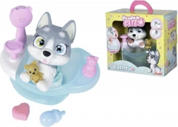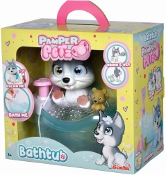 Descoperă lumea distracţiei cu Căţeluşul Husky Pamper Petz în cadă. Acest prieten canin adorabil le oferă copiilor multe ore de joacă, în care pot avea grijă de animalele lor de companie, să le spele și să le îngrijească ca pe animale reale.