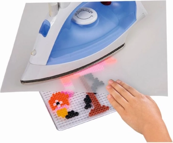 Mărgelele se fixează ușor cu un fier de călcat obișnuit, permițând copiilor să creeze opere fantastice durabile.<64v>