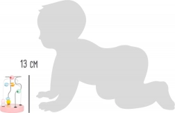 Datorită dimensiunilor compacte (înălțime aprox. 13 cm, diametrul bazei 9 cm), încape ușor în rucsăcel și este perfect pentru călătorii și pentru colțul celor mici. Construcția sigură și marginile netede asigură o joacă confortabilă și sigură pentru copiii de la 12 luni.