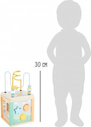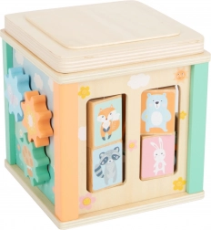 Acest cub motric din lemn, în culori pastelate moderne, din gama „Pastel”, impresionează prin ponderea mare de lemn, motivele drăguțe cu animale și execuția atentă. Copiii se pot juca pe toate cele cinci fețe și își exersează în mod natural coordonarea mână–ochi, răbdarea și orientarea în spațiu.