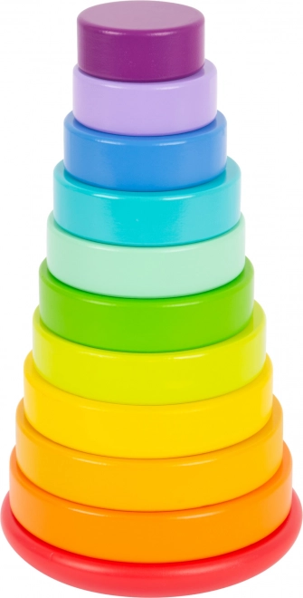 Cu zece discuri viu colorate și o tijă pe o bază rotunjită, acest turn susține dezvoltarea abilităților motrice și diferențierea culorilor.
