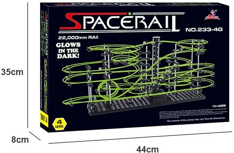 Descoperă magia și ingeniozitatea cu pista de bile luminoasă Spacerail! Un set de construcție captivant pentru mințile inventive, oferindu-ți șansa de a crea o aventură unică pentru bile pe o pistă lungă de 22 de metri care strălucește în întuneric.