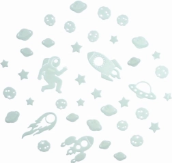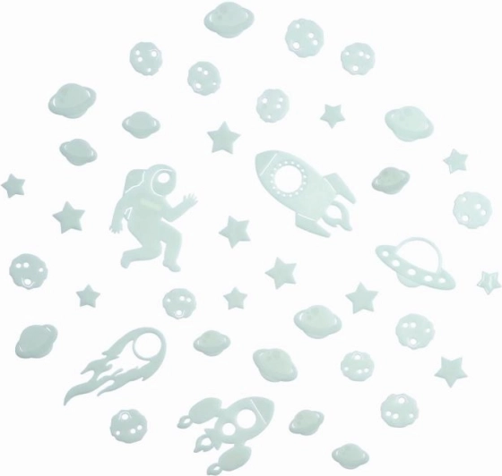 Cu acest set spațial puteți crea cu ușurință un cer nocturn fermecător chiar în camera copilului. Este suficient să le expuneți la lumină, iar efectul lor fosforescent va oferi o luminozitate delicată, care stimulează imaginația și favorizează un somn liniștit.