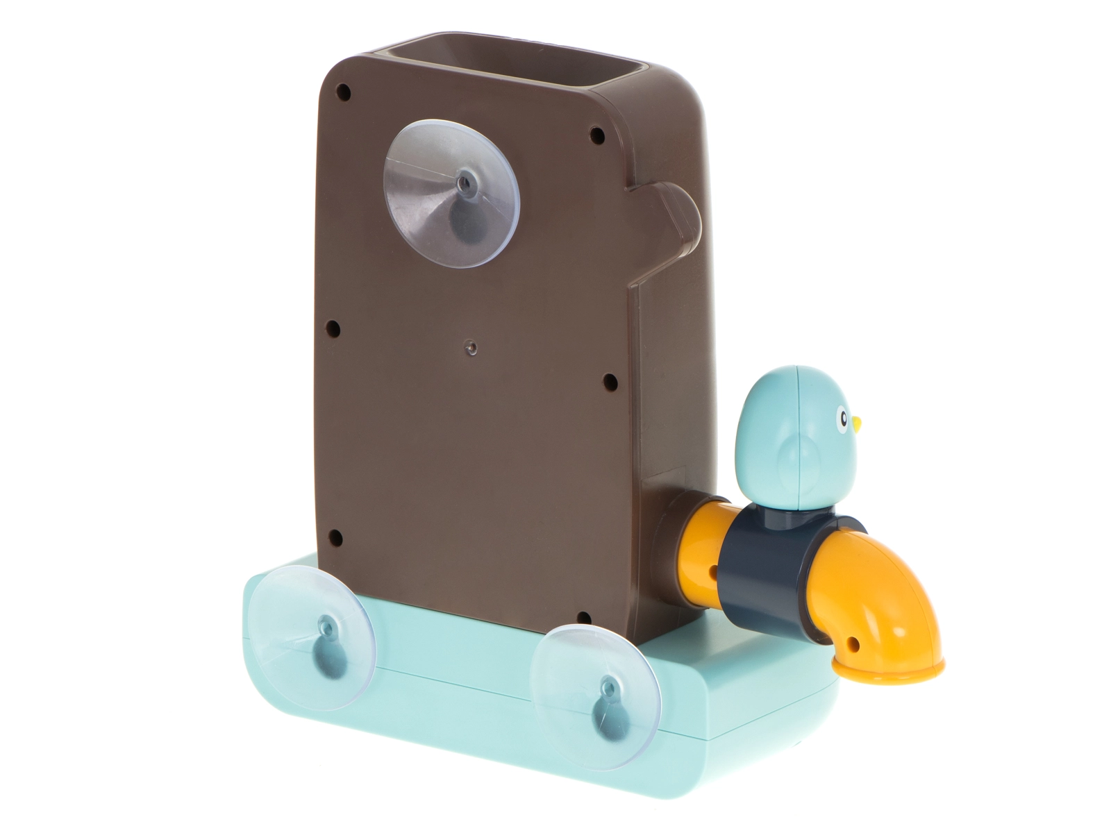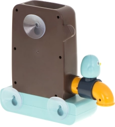 Căsuța veselă în copac, cu păsărele drăgălașe, este motivația ideală pentru copiii care nu prea iubesc baia. Se montează simplu pe cadă sau pe faianță cu ajutorul ventuzelor, o umpli cu apă din cănuța inclusă și distracția începe. Păsărica albastră controlează robinetul – prin rotire oprești sau pornești apa, bufnița supraveghează rotița cu apă, iar păsărica gri creează un efect de duș datorită orificiilor fine.