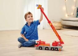 Porniți la intervenție cu macara auto de pompieri 2 în 1 Pompierul Sam. Vehiculul robust din plastic are o lungime de 50 cm și, datorită părții frontale detașabile, oferă două moduri de joacă – deplasare cu cabina și lucru cu macaraua.
