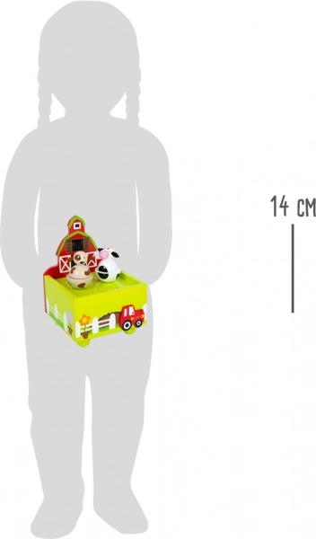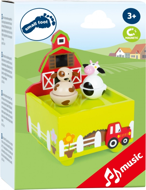 Această cutie muzicală adorabilă cu motiv de fermă de la small foot le oferă copiilor un somn liniștit. Pe melodia cântecului „Moș Donald avea o fermă”, figurinele de vacă și cățel se rotesc ușor. Datorită lemnului de calitate, prelucrării durabile și mecanismului cu cheiță, este un accesoriu frumos pentru orice cameră de copil.