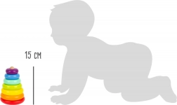 Acest turn de stivuire permite copiilor să recunoască și să sorteze inelele colorate în funcție de mărimea și culoarea lor. Datorită bazei rotunjite, turnul poate să se balanseze, aducând astfel mai multă bucurie și distracție în timpul jocului. Construcția robustă din lemn este ideală pentru distracția de lungă durată, chiar și pentru cei mai mici.