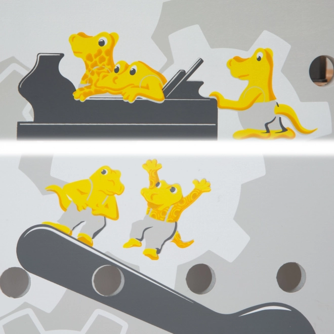 Opt piese de unelte, inclusiv un fierăstrău, un ciocan și o șurubelniță, permit copiilor să imite reparații reale și să-și îmbunătățească abilitățile practice.