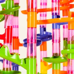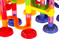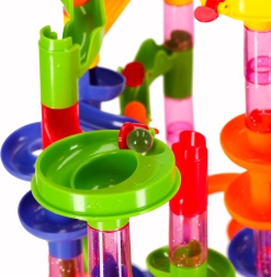 Setul permite construirea de turnuri stabile, tobogane spiralate și tuneluri. Efect vizual excelent și curs lin al bilelor garantat.