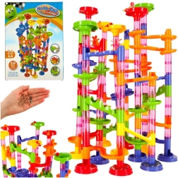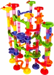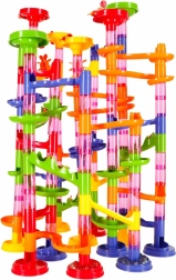 Pistă cu bile colorată pentru copii și adulți cu 219 piese XXL oferă posibilități infinite de construcție. Construiți turnuri înalte, tuneluri spiralate și tobogane și lăsați bilele să concureze. Stimulează creativitatea, gândirea spațială și motricitatea fină, excelentă ca jucărie educativă și distracție pentru întreaga familie.