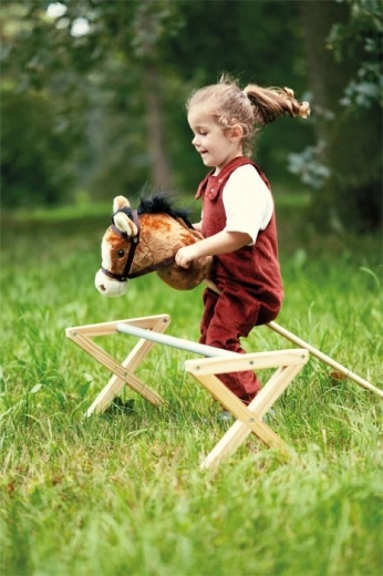 Căluțul de pluș pe băț Nico este însoțitorul ideal pentru micii călăreți. Capul din pluș fin, cu zăbală și frâu, invită la jocuri de imaginație, în timp ce bățul din lemn cu mânere stabile și roți asigură o deplasare confortabilă și lină pe podea sau afară. Copiii se vor bucura de o experiență mai autentică datorită efectului sonor – la apăsarea urechilor, căluțul nechează voios.