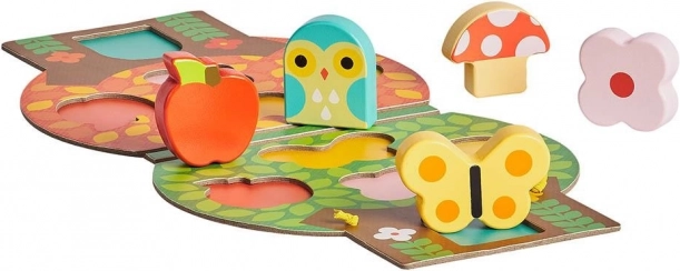 Puzzle-ul din lemn Micul copac de la PETIT COLLAGE impresionează prin designul vesel și execuția atentă. Copiii își exersează motricitatea fină, coordonarea mână–ochi și recunoașterea formelor și culorilor. Două scene diferite prelungesc distracția și încurajează jocul creativ.