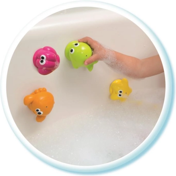 Animăluțele sunt prevăzute cu ventuze, ceea ce permite fixarea ușoară pe pereții căzii. Setul este ideal pentru susținerea motricității fine și oferă o experiență interactivă. Copiii pot încerca jocuri diverse și își pot dezvolta imaginația.