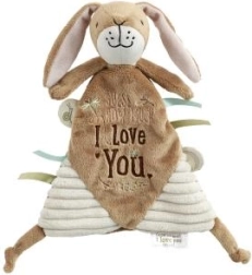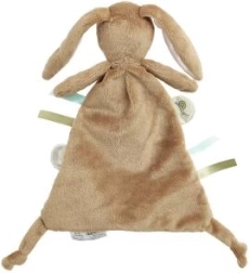 Această jucărie linistitoare adorabilă în formă de iepuraș este un însoțitor minunat pentru micile tale comori. Ajută la adormire și oferă confort datorită materialului moale și panglicilor textile pentru dezvoltarea abilităților senzoriale.