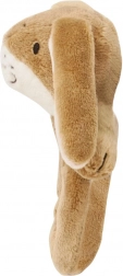 Iepurașul cu urechi lungi și față brodată atrage copiii la joacă.