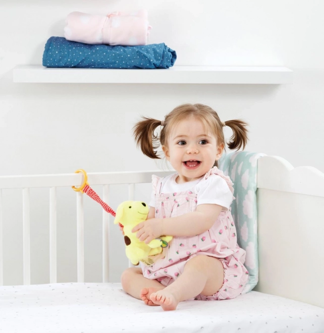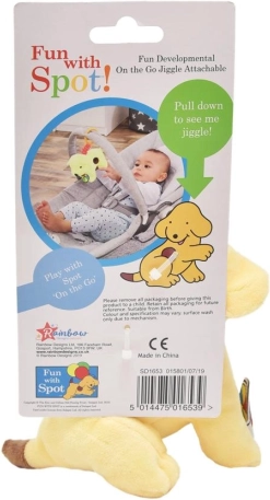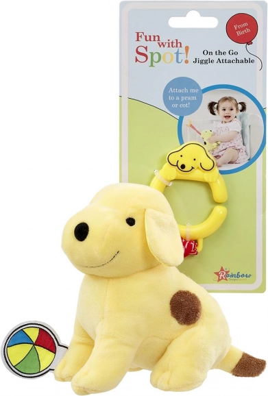 Cu căţeluşul de pluş Spot, copilul dumneavoastră se va bucura de multă distracție. Această jucărie susține dezvoltarea motricității fine și percepția senzorială. Căţeluşul măsoară 13 cm în înălțime și designul său colorat va atrage fiecare copil. Poate fi ușor atașat de pătuț sau scaunul auto și, datorită curelelor lungi, este potrivit pentru mâinile mici ale copiilor.
