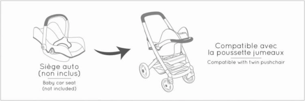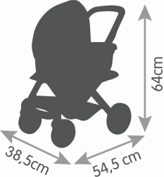Husele robuste din material plastic sunt rezistente și ușor de întreținut – este suficient să le ștergi cu o lavetă umedă. Roțile frontale pivotante și stratul antifonic pe roți oferă o mișcare lină, silențioasă și stabilă atât în interior, cât și în exterior. Potrivit pentru păpuși de până la 42 cm (păpușa nu este inclusă).