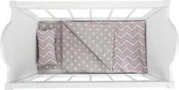 Acest pătuț elegant, alb, pentru păpuși, din lemn masiv, este un accesoriu perfect pentru orice „regat” al copiilor. Datorită șipcilor solide și construcției stabile, păpușile sau jucăriile de pluș vor dormi confortabil și în siguranță. Pachetul include lenjerie de pat reversibilă cu perniță și păturică, care completează aspectul modern al pătuțului.