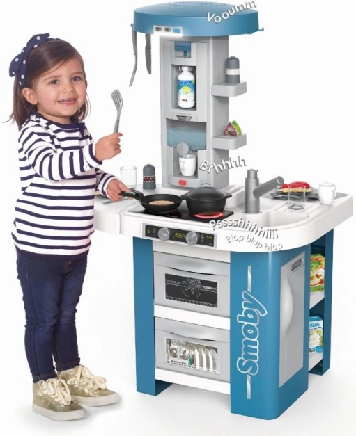 Blatul de bucătărie este echipat cu o plită electronică modernă cu două sunete de gătit și lumină roșie pentru a simula gătitul real. Espressorul interactiv cu rezervor reumplibil imită procesul de preparare a cafelei, în timp ce hota oferă trei niveluri de zgomot, împreună cu iluminare.