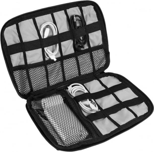Prinderile elastice și buzunarul interior pot găzdui mai multe cabluri și accesorii mici, astfel încât le vei găsi mereu rapid.