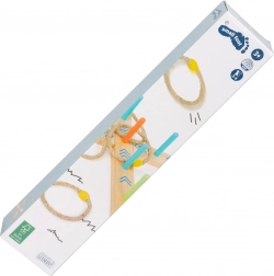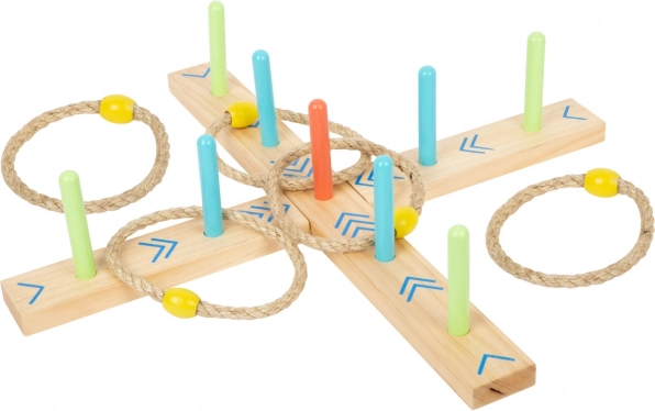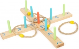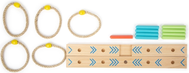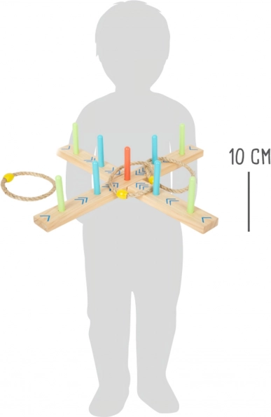 Aruncarea cercurilor este un joc de familie distractiv care va îmbunătăți abilitățile și coordonarea. Baza este realizată din lemn 100% certificat FSC®, asigurând originea durabilă și ecologică a materiilor prime. Datorită săgeților colorate de pe bază, copiii pot calcula scorul ușor, fără a fi nevoie să știe numere. Include și săculeț de bumbac pentru depozitare ușoară.