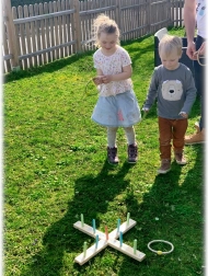 Bucurați-vă de multă distracție cu copiii cu acest joc din lemn pentru exterior.