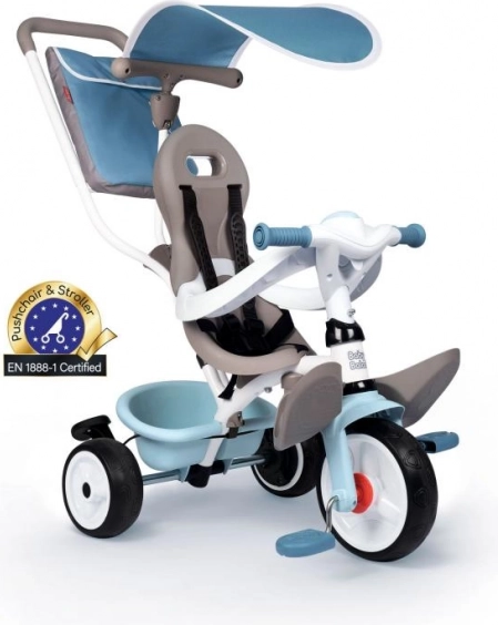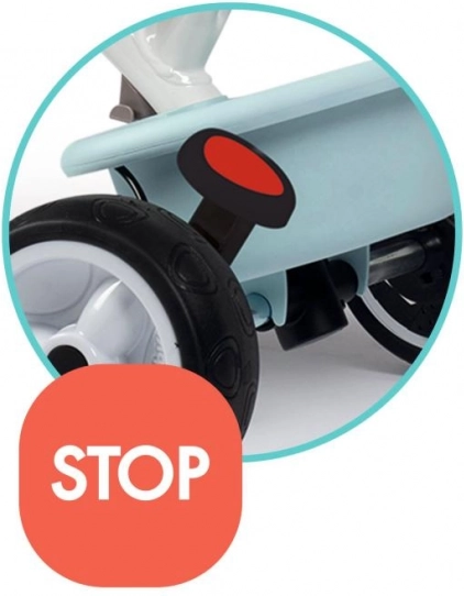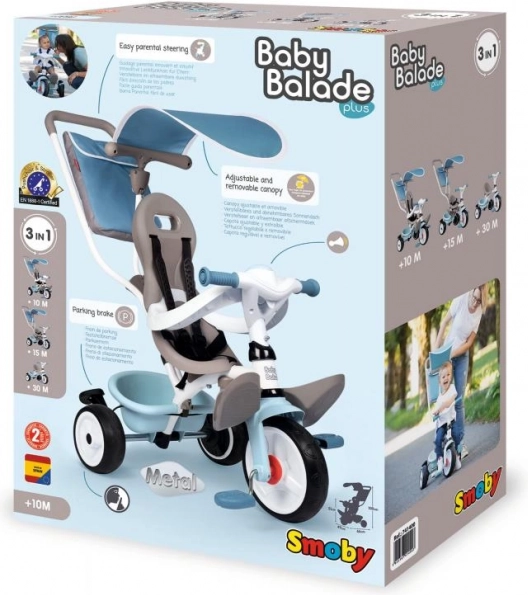 SMOBY Baby Balade Plus este o primă tricicletă fiabilă, care îți va însoți copilul de la primele plimbări până la mersul independent. Părinții vor aprecia tija de ghidare cu înălțime reglabilă și blocarea direcției pentru manevrare ușoară, precum și frâna de parcare pentru opriri sigure. Datorită mecanismului de roată liberă, roata se poate învârti în timp ce pedalele rămân imobile – ideal când este condusă de un adult.