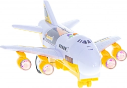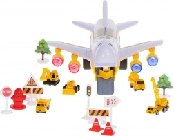 Acest set multifuncțional combină avionul de transport cu o lume mini a construcțiilor. Mașinuțele pot urca în avion pe rampa frontală rabatabilă, iar datorită părții superioare deschise copiii au acces facil la încărcătură. Motoarele se aprind cu lumini LED, susținând o experiență de joc realistă.