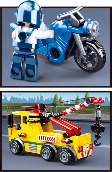 Trăiește misiuni de salvare pe șosea cu setul de construcție Sluban Town camion de tractare cu motocicletă. Datorită celor 205 piese și 2 figurine cu părți rotative și oscilante, copiii pot asambla cu ușurință un camion de tractare realist cu braț funcțional și se vor bucura de ore întregi de distracție creativă.