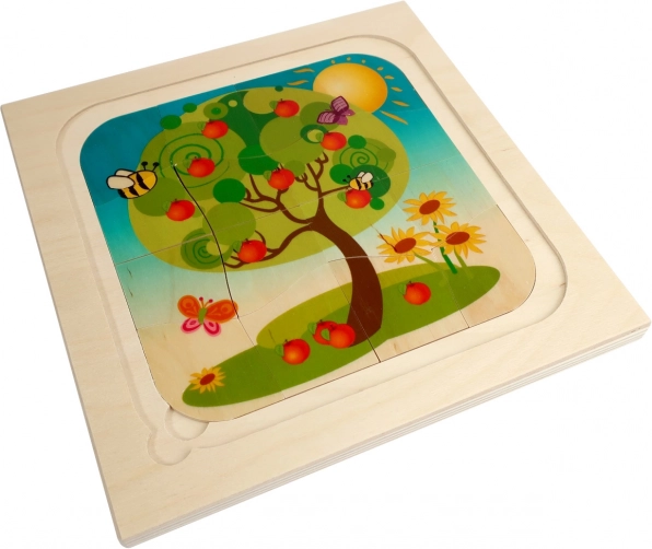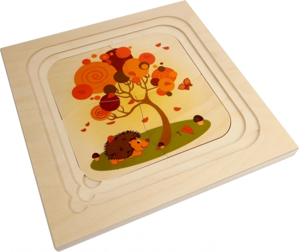 Puzzle-ul din lemn cu anotimpuri HESS este alegerea ideală pentru primele activități de asamblare. Placajul de mesteacăn robust și imprimarea precisă garantează durabilitate și un aspect atrăgător. Copiii își exersează coordonarea mână–ochi, răbdarea și concentrarea, în timp ce descoperă culorile și temele naturii.
