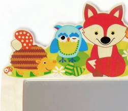 Acest cuier din lemn de înaltă calitate, cu motivul jucăuș Animale din pădure, aduce culoare și ordine în camera copiilor. Datorită celor cinci cârlige solide, organizezi cu ușurință jachete, hanorace, rucsăcele și accesorii. Oglinda integrată din plexiglas indestructibil este ușoară, sigură și ideală pentru utilizarea zilnică.