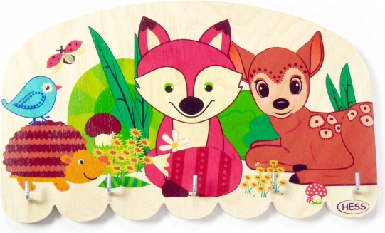 Înviorați holul, camera copilului sau dormitorul cu un cuier din lemn cu motivul Animale din pădure. Execuție de calitate, culori intense și design jucăuș îl transformă într-un accesoriu practic și decorativ pentru orice interior.