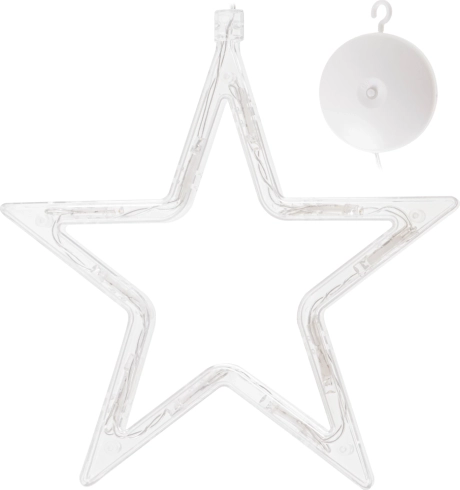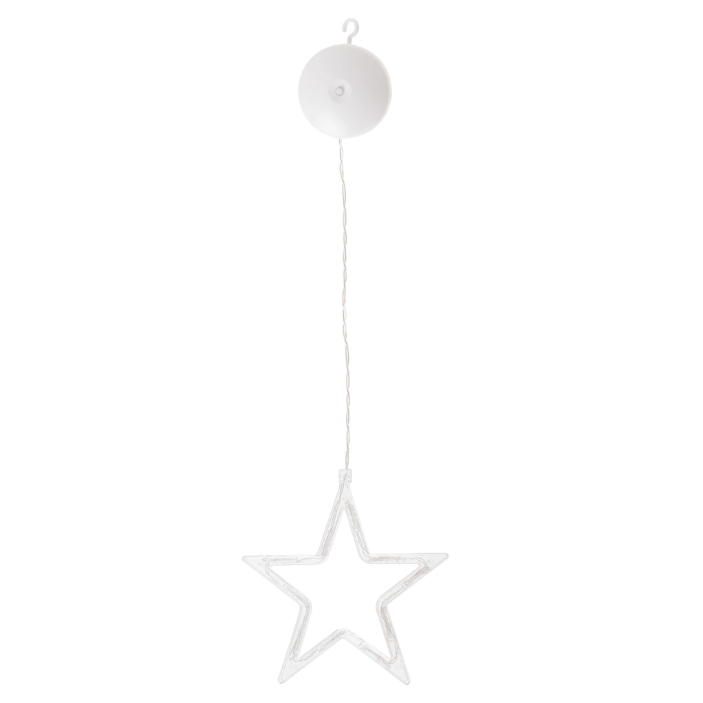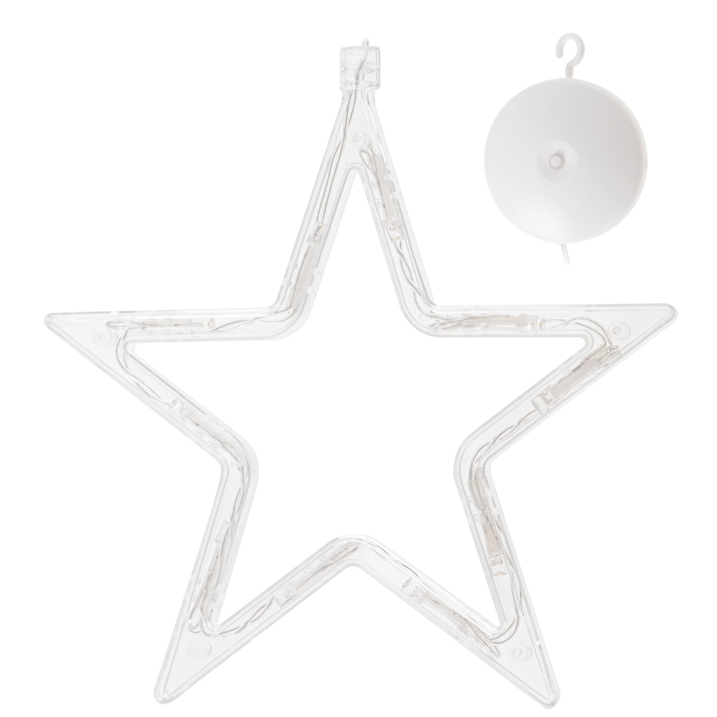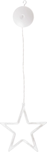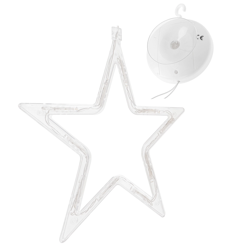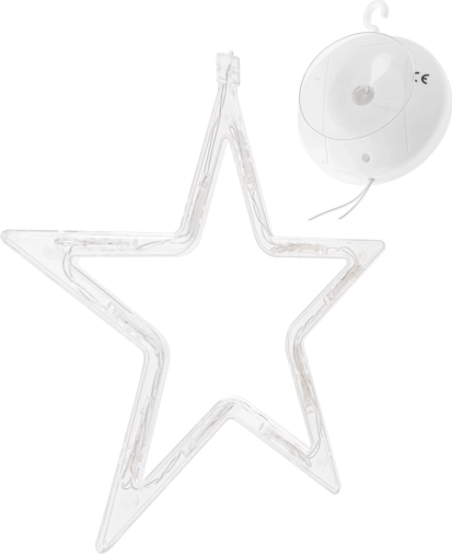 Cutia de baterii integrată servește și ca agățătoare cu ventuză – fixezi steaua în doar câteva clipe pe fereastră sau pe alte suprafețe netede.