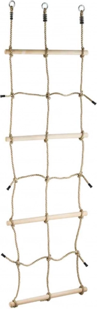 Plasă de cățărat pentru copii este un accesoriu ideal pentru aventurile în aer liber. Datorită treptelor din lemn și celor trei inele de agățat, oferă o distracție excelentă și siguranță într-un loc de joacă modern sau la o căsuță în copac.