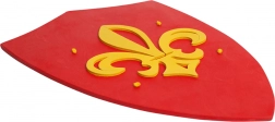 Roșul intens și crinul galben conferă scutului un farmec medieval. Se potrivește de minune cu costumele și ca decorațiune pentru camera copiilor.