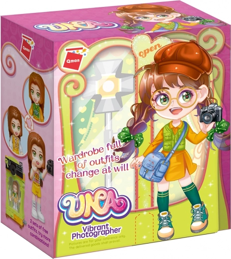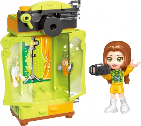 Setul de construcție Qman seria UNA dulapul fotografei dezvoltă imaginația copiilor și motricitatea fină. Copiii construiesc un dulap stilat cu accesorii foto și pot interpreta povești din studio și ședințe foto amuzante. Datorită compatibilității cu alte seturi, extindeți ușor scena cu idei noi.